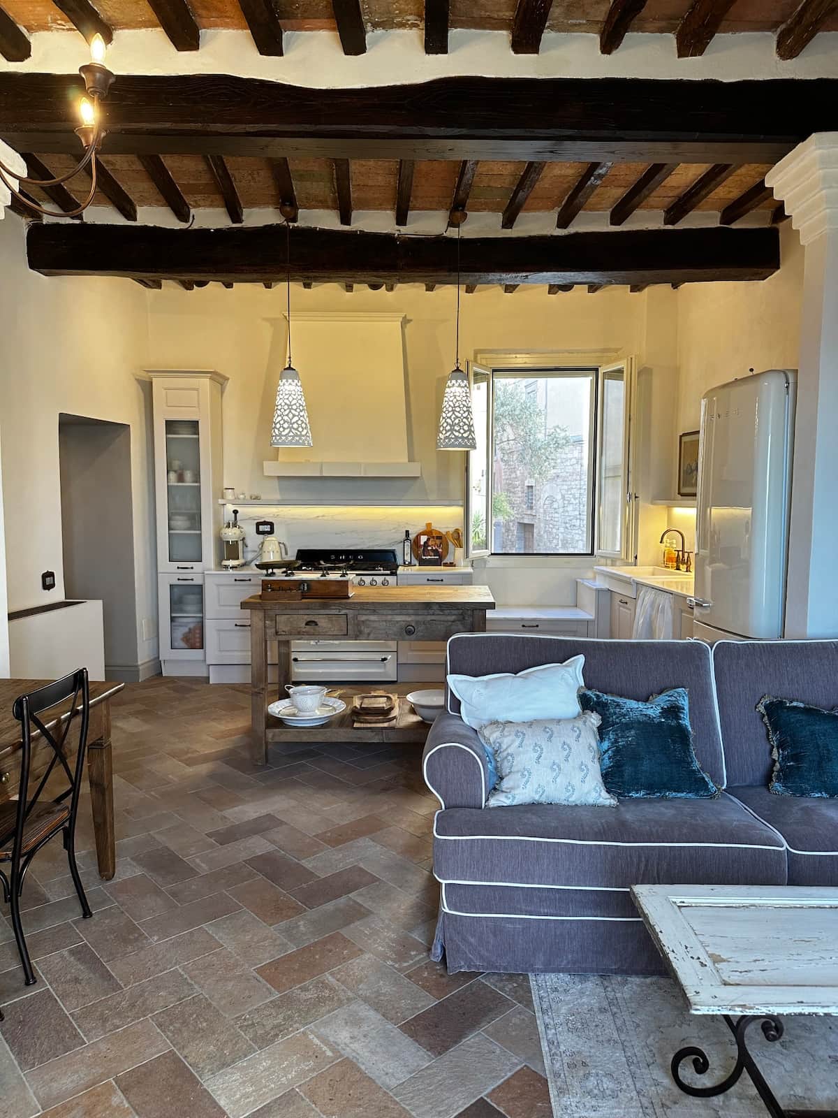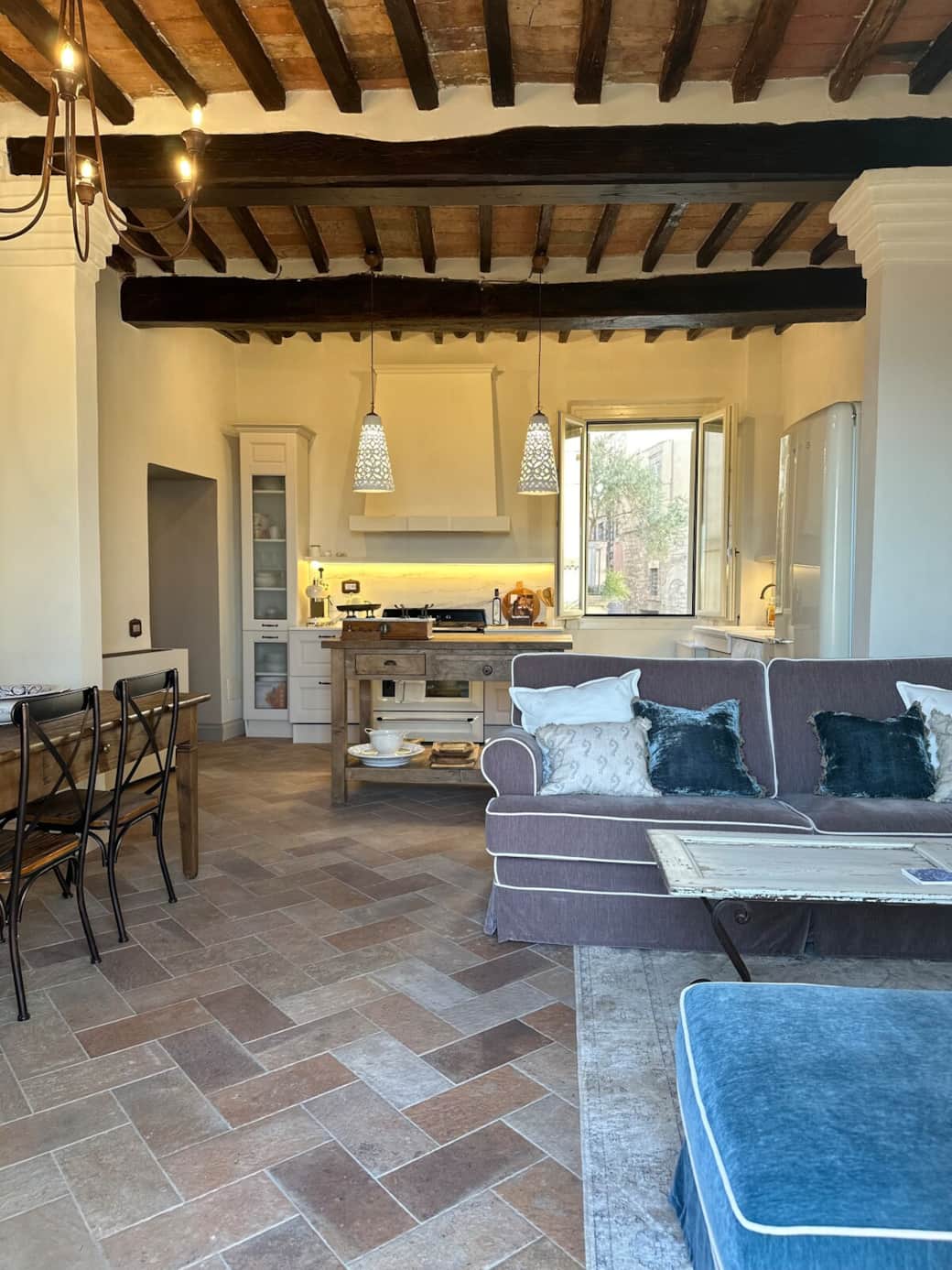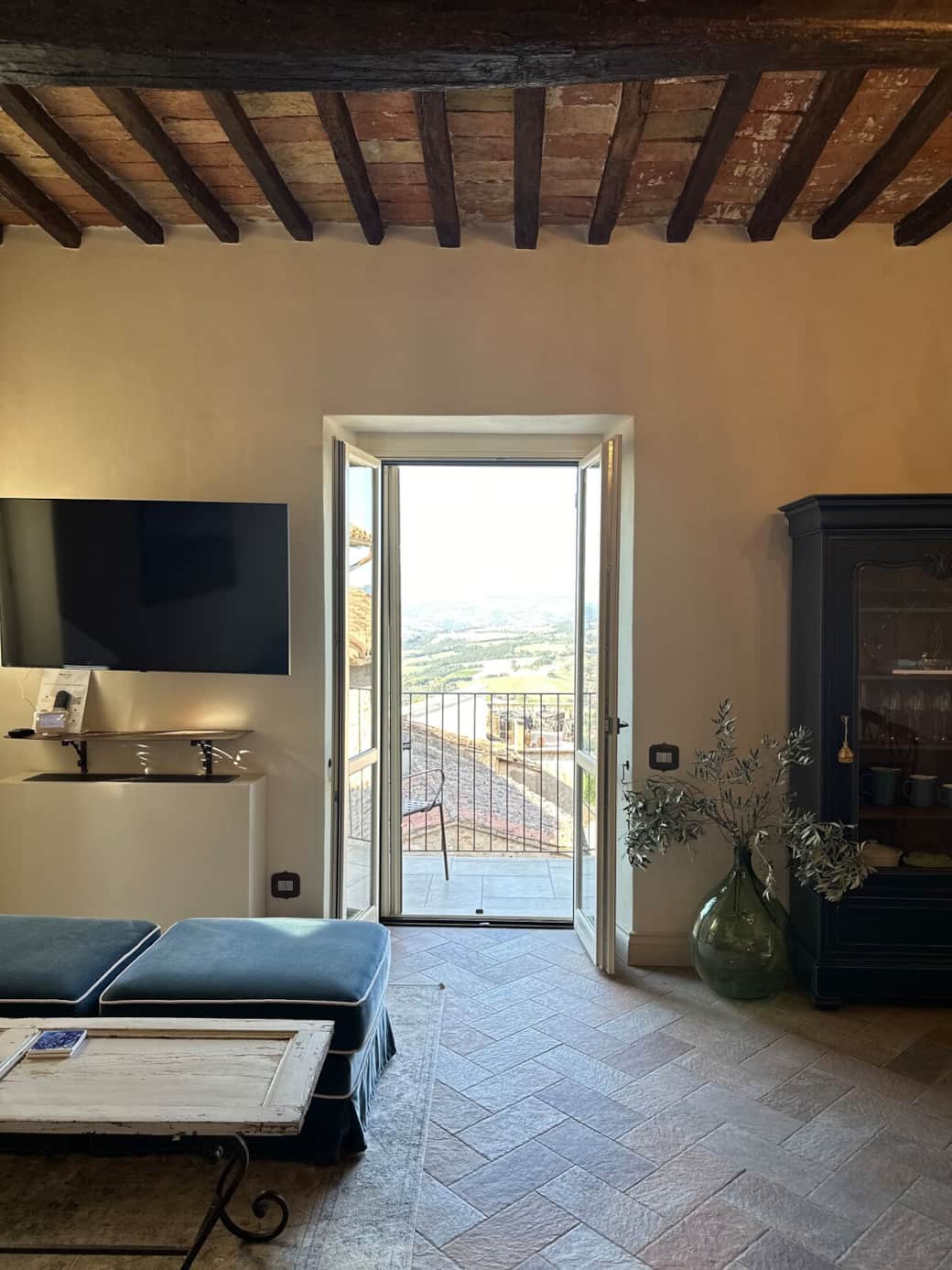 Snowy Owl is an expansive, light-filled two-bedroom apartment located on the second floor of the historic Nido di Gufi palazzo in Todi. Once the noble bedrooms of this 12th-century residence, it now welcomes modern travellers with elegance, comfort, & breathtaking views in every direction.
